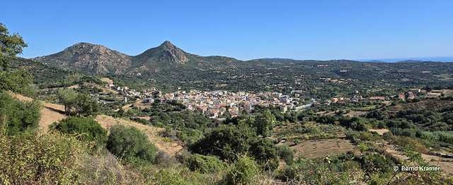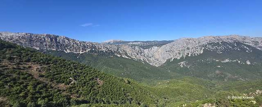 Die Straße führt weiter durch Korkeichenwälder, einsame Bergdörfer und endlose Kurven. Die alte SS125 ist nie gerade – sie schlängelt sich wie eine lebendige Linie durch die Landschaft. Immer wieder öffnen sich Panoramen: grüne Täler, bizarre Felsformationen, und am Horizont glitzert manchmal das Meer.