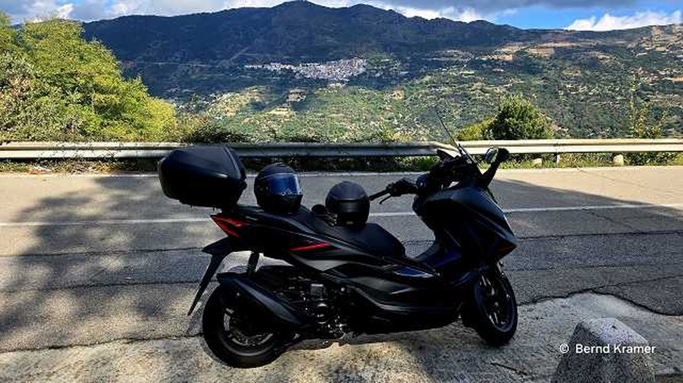 Die Straße führt weiter durch malerische Orte: enge Gassen, weiß getünchte Häuser, bunte Fensterläden. Vor den Türen sitzen ältere Menschen, die den Fahrer grüßen, als sei er ein alter Bekannter.Eine Pause bietet sich in den kleinen Cafés am Straßenrand an. Dort riecht es nach starkem Kaffee, nach frisch gebackenem Gebäck. Der Roller steht im Schatten, während man selbst bei einem Glas kühlen Wassers oder einem Espresso die Augen über die Szenerie schweifen lässt – über die Berge, die Straßen, die unendliche Weite.