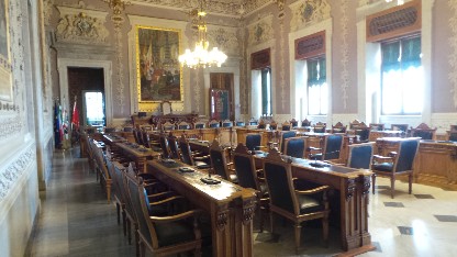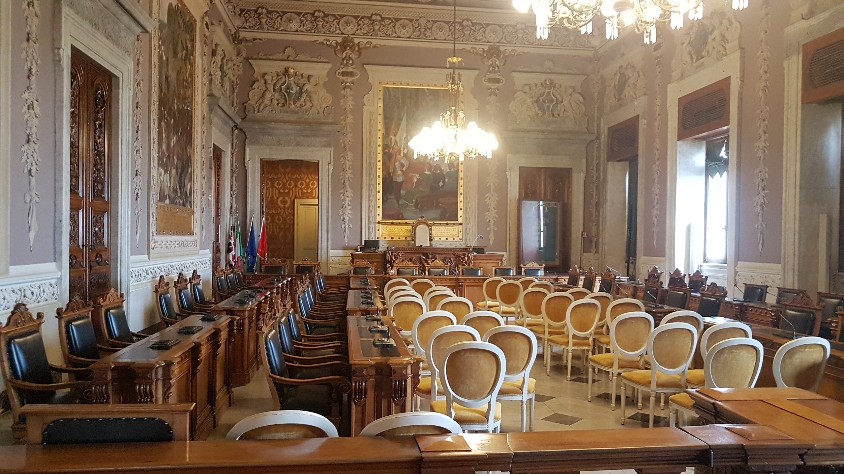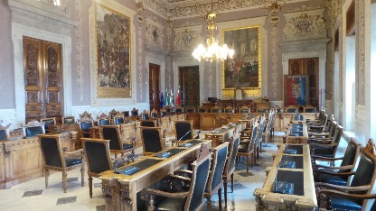Der Besucher wird überrascht sein über die Pracht im Innern des von außen eher unauffälligen Gebäudes. Wunderschöne Kronleuchter aus bunten Muranoglas in den Königsgemächern aber vor allem der Konferenzraum mit den Malereien des Domenico Bruschi aus dem Ende des 18. Jh. werden jeden Besucher erfreuen.